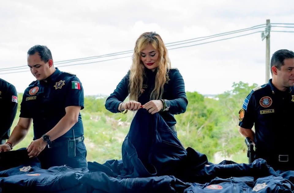 Marcela Muñoz Titular de la SPSC Entregó Chamarras a Elementos de la Policía Estatal